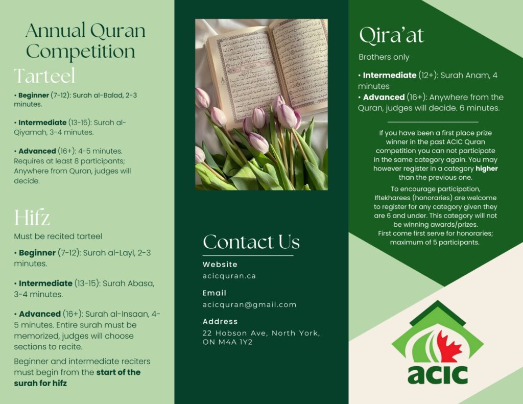 We are a committee in the Afghan Canadian Islamic Community. Our goal is to provide materials and resources to increase the communities engagement with the Quran.
